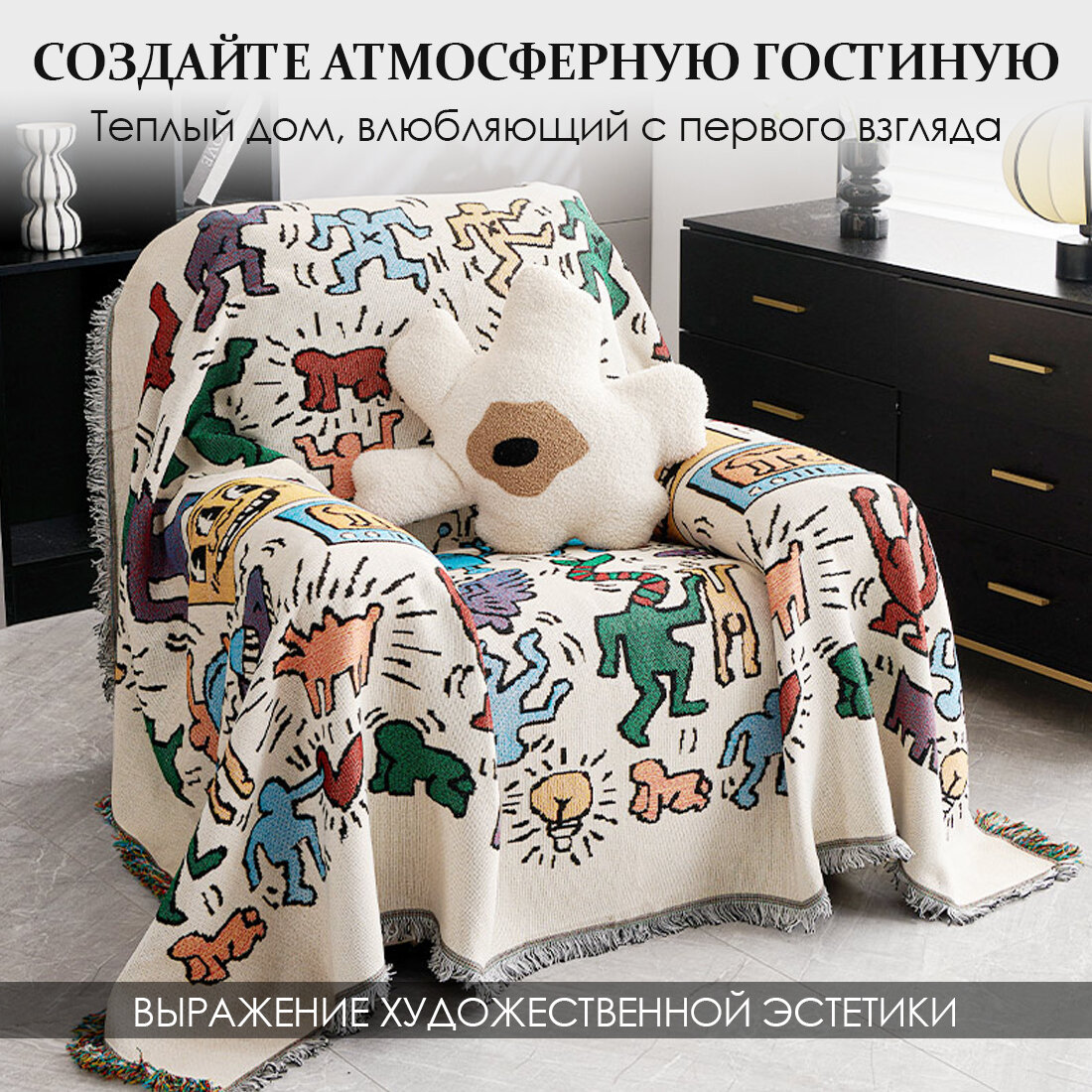 покрывало на диван, Покрывало для пикника, плед на диван,плед для пикника,подарок на новый год, современное покрывало для дивана в стиле INS с граффити, размер 90X180 1 430 ₽