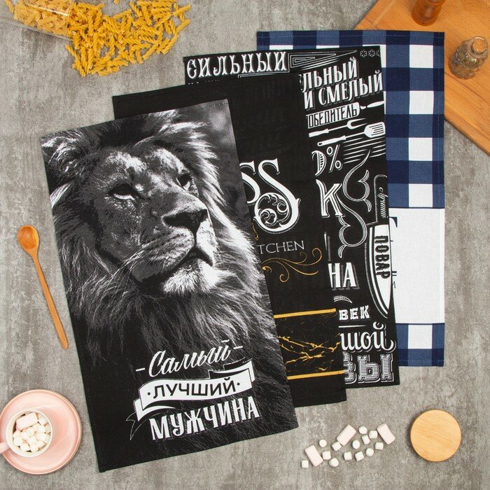 Полотенце кухонное 4 штуки , 35х60, Доляна "Самый лучший мужчина" 100% хлопок 728 ₽