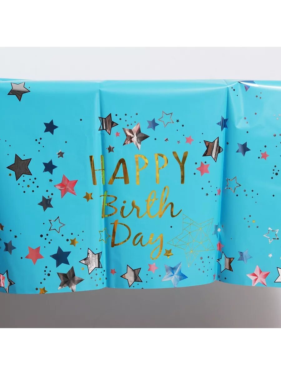 Скатерть "С Днём Рождения" 137х183 см, цвет голубой 7098187