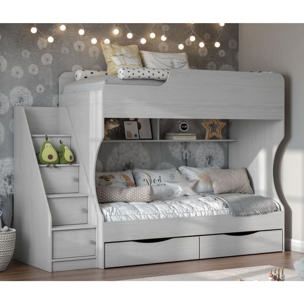 Геометрия-2 кровать двухъярусная, без матраца Делано светлый/белый чердак для детей с ящиками, двуспальная 80х180см 33 607 ₽