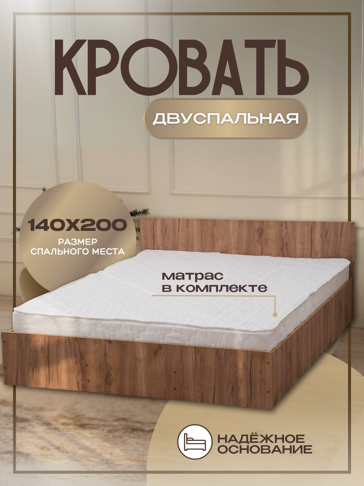 Двуспальная кровать Оникс с матрасом Лайт (10 см), 140х200 см информация: