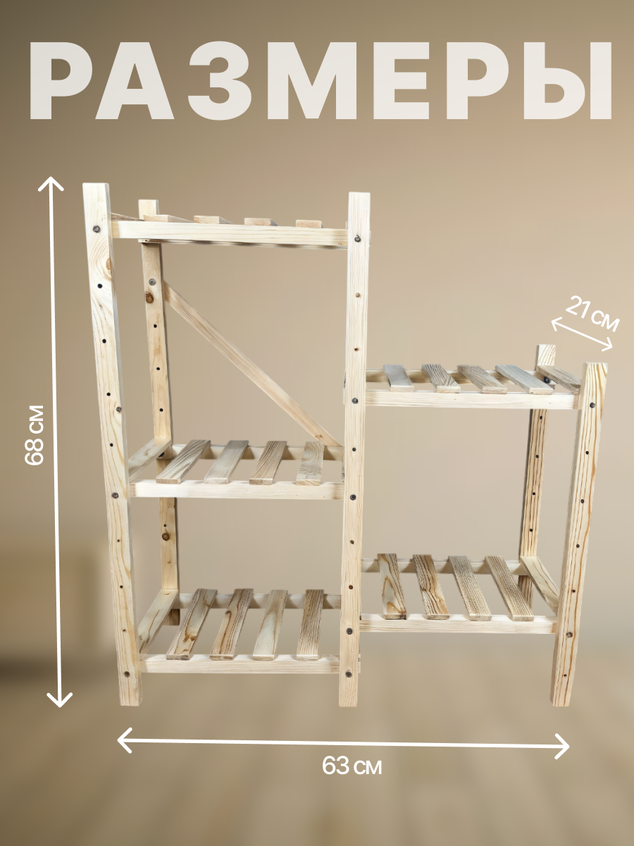 Стеллаж деревянный для дома 68х63х23 см / Этажерка деревянная на 5 полок информация: