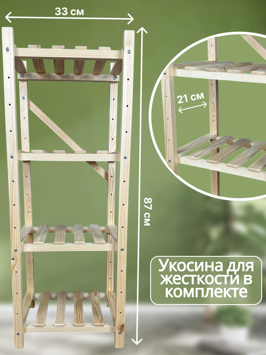 Стеллаж деревянный для дома 87х33х23см / Этажерка деревянная на 4 полки информация: