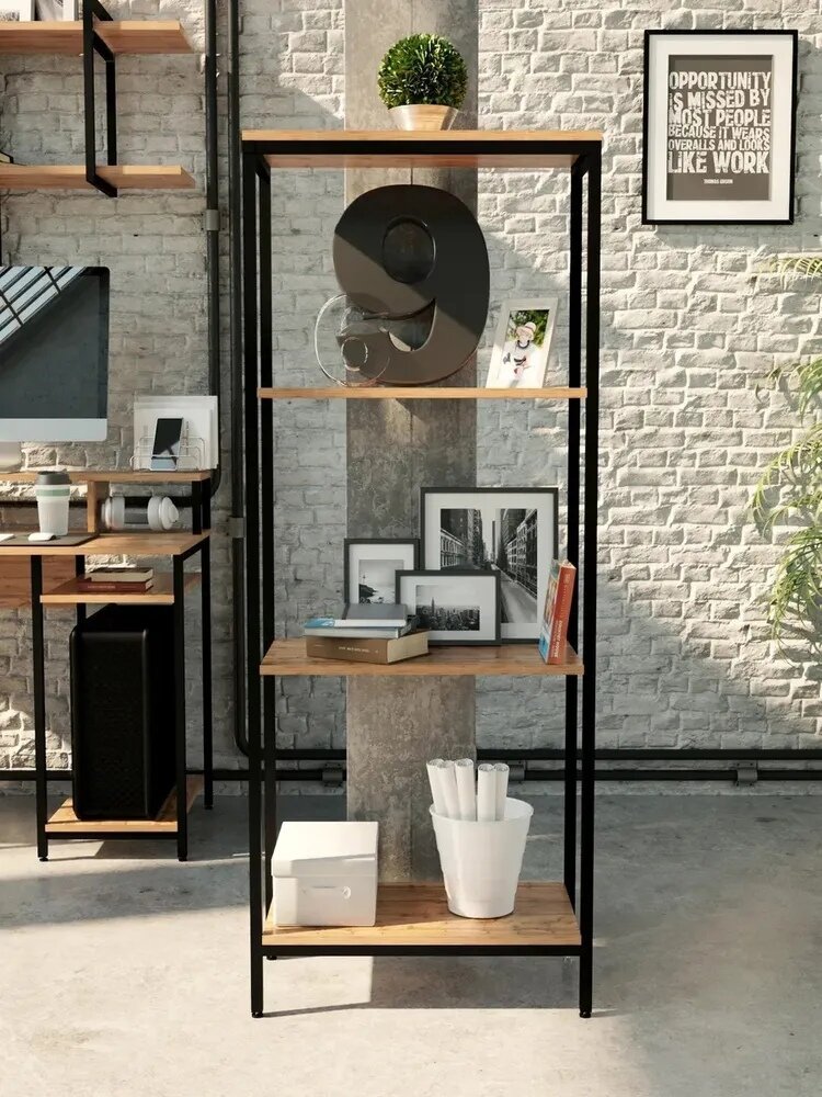 Стеллаж Айсберг Лофт 40/6 / Черный/ с полками дуб крафт табак/ Для дачи/ для дома/ для книг/ в офис