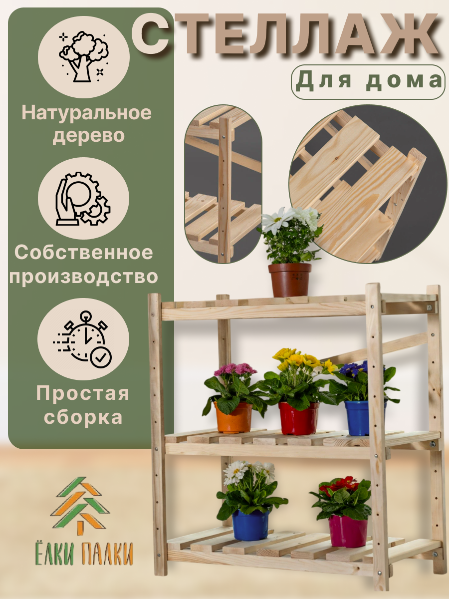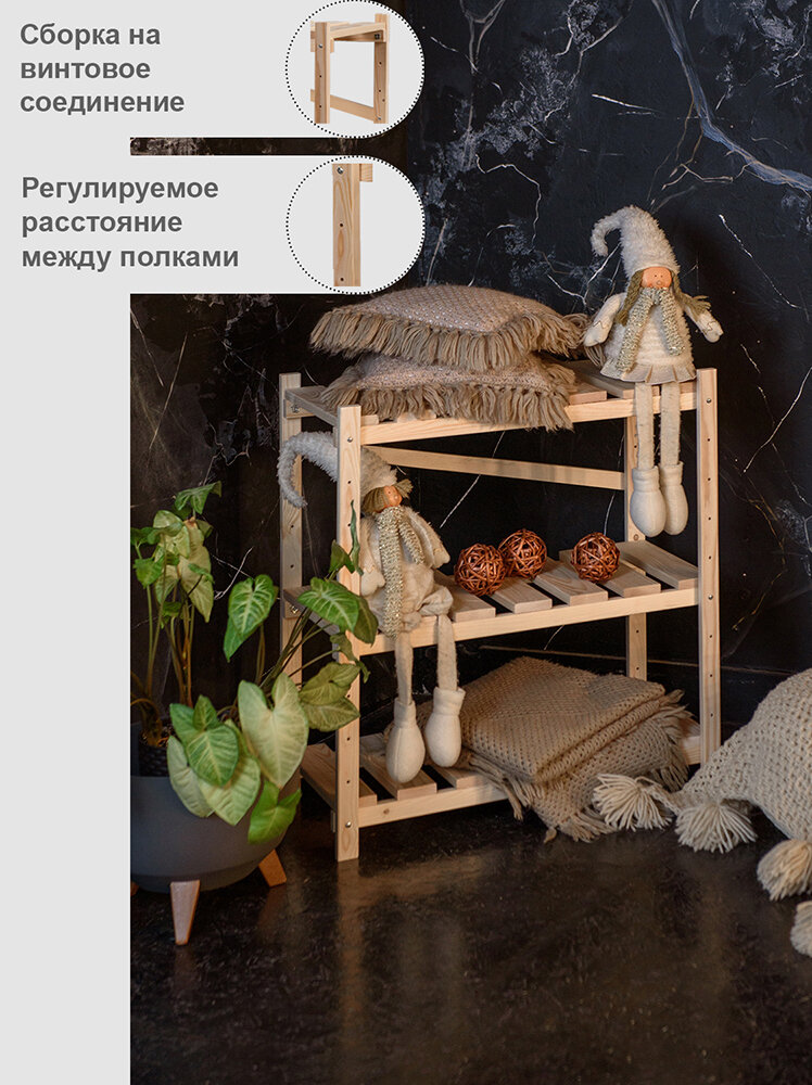 Стеллаж деревянный для дома 610х610х290 мм / Подставка деревянная на 3 полки информация: