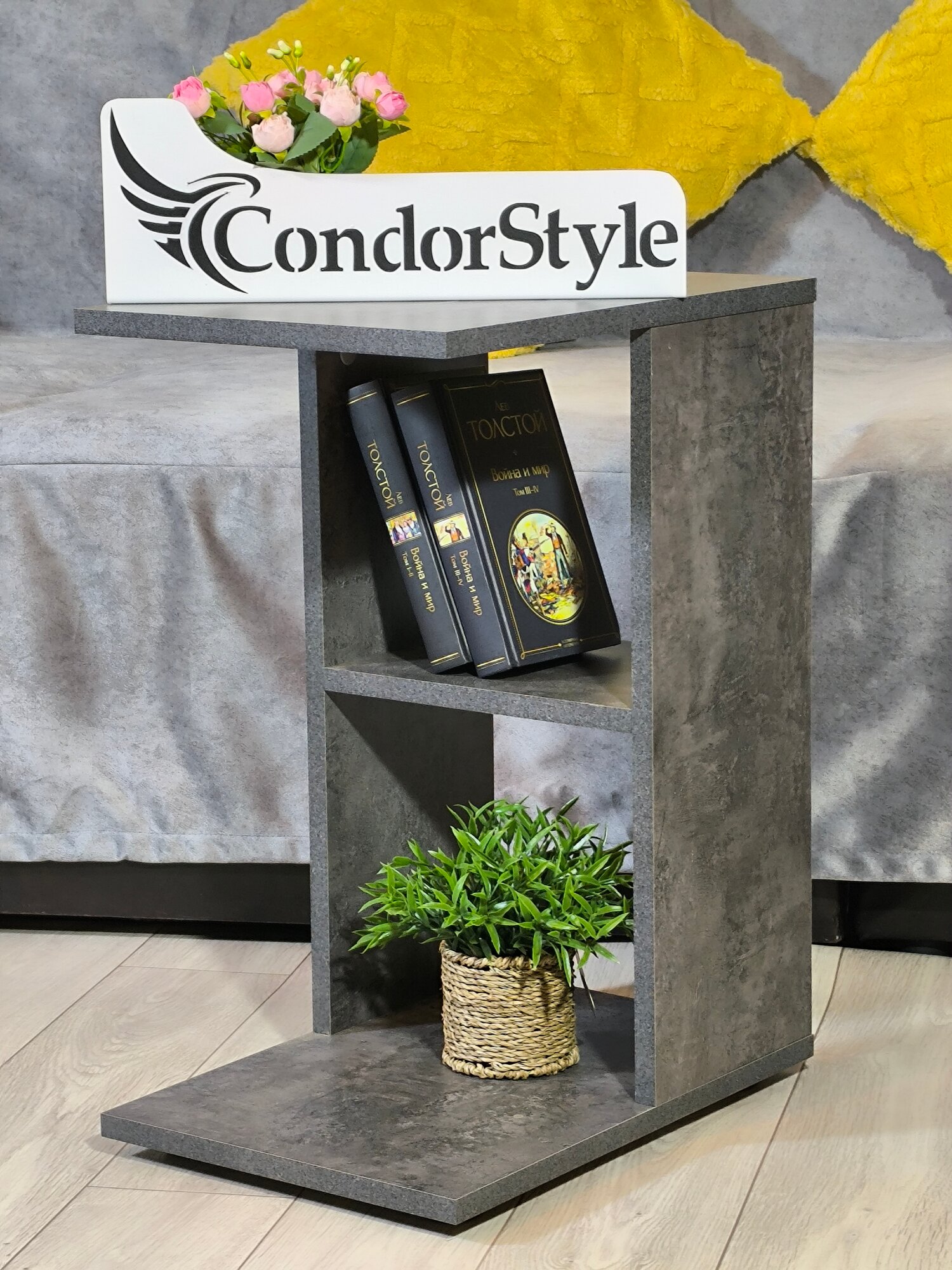 Столик журнальный приставной прикроватный "СОЙЕР" Цемент темный серый информация: