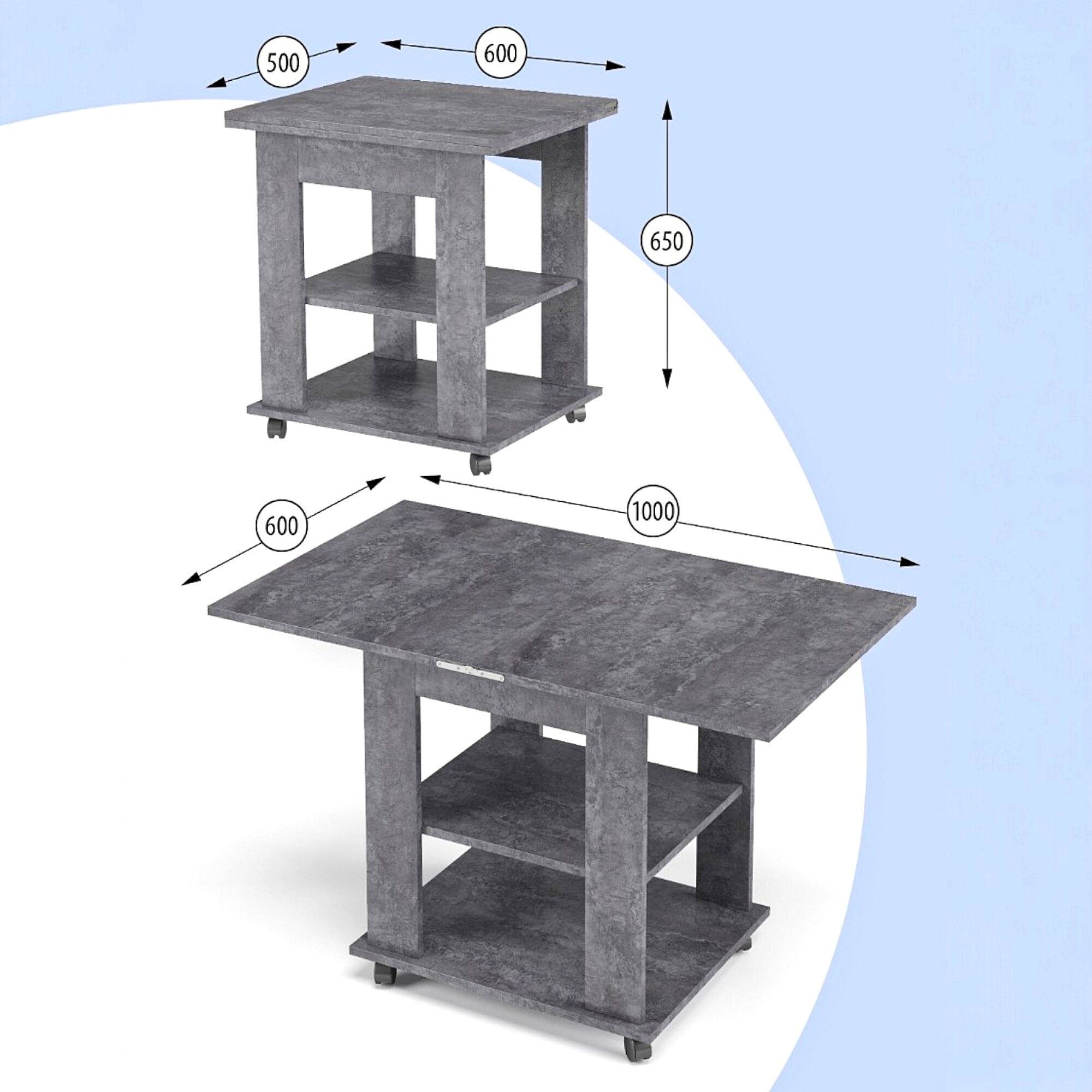 Журнальный стол раскладной прямоугольный 50х60 (100х60) для дома, мебельный цвет слейт , ЛДСП, КЕА 6 500 ₽