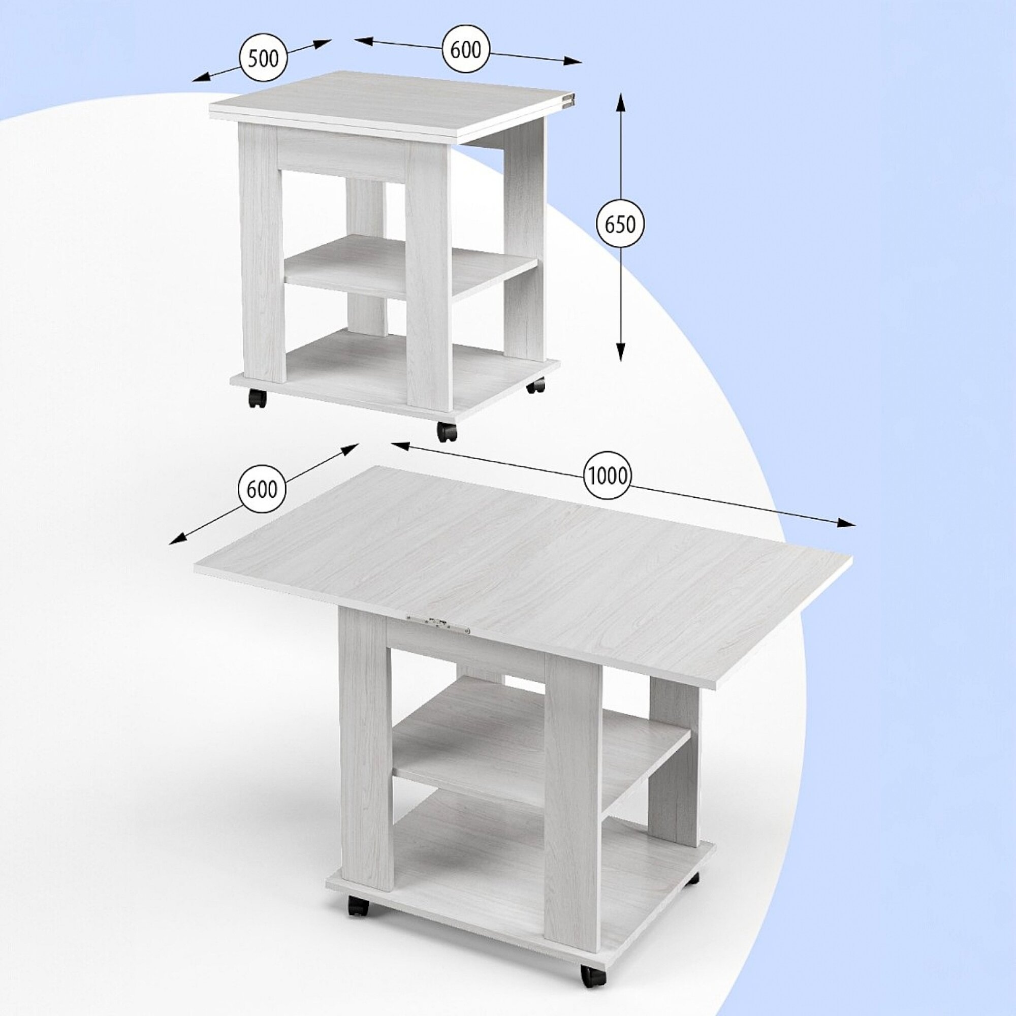 10 цен на Журнальный стол раскладной прямоугольный 50х60 (100х60) для дома, мебельный цвет ясень анкор белый, ЛДСП, КЕА
