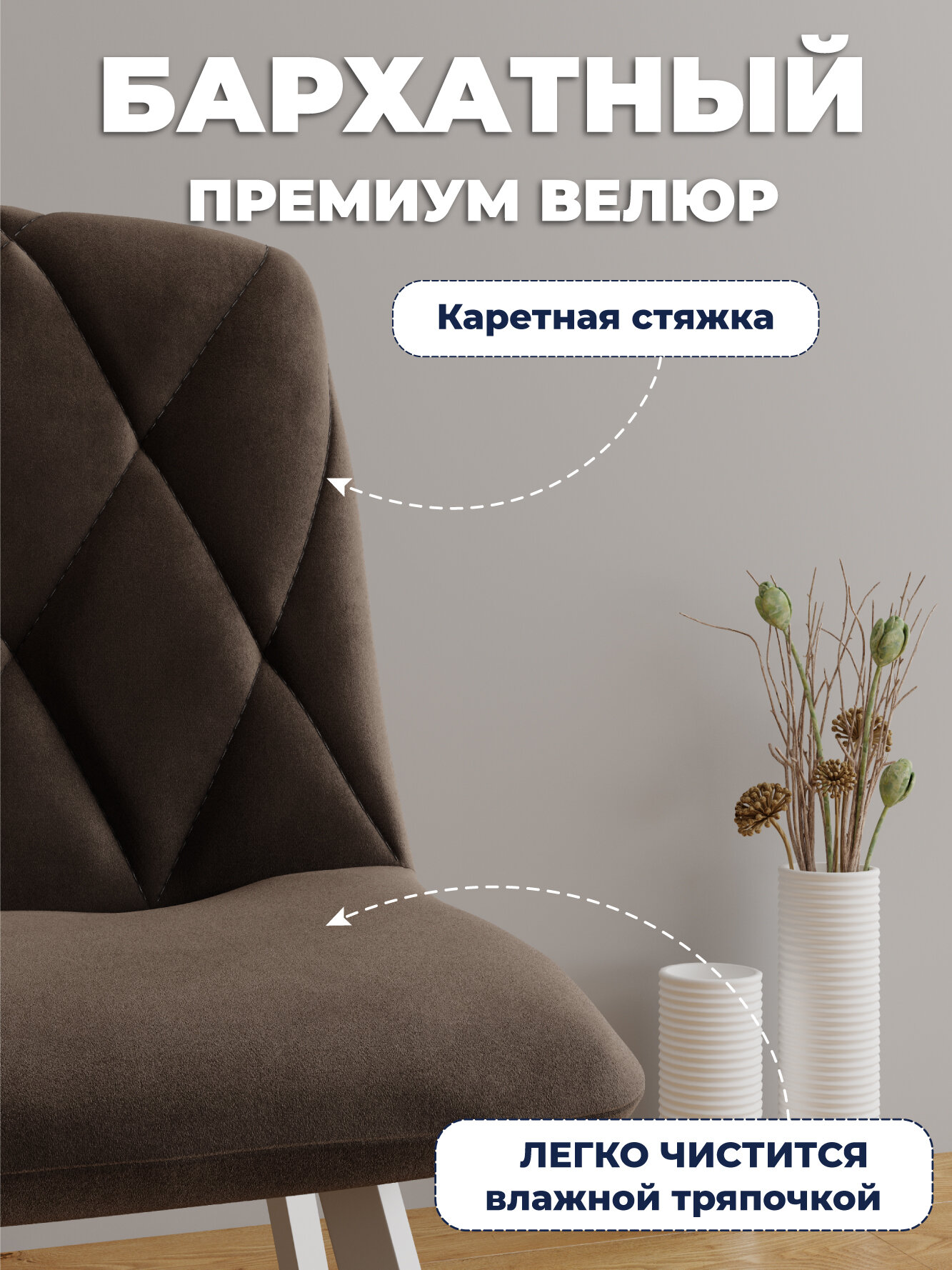 Комплект (4 шт) мягких стульев для кухни, кабинета DC-2103 велюр, капучино, на белом каркасе 16 900 ₽