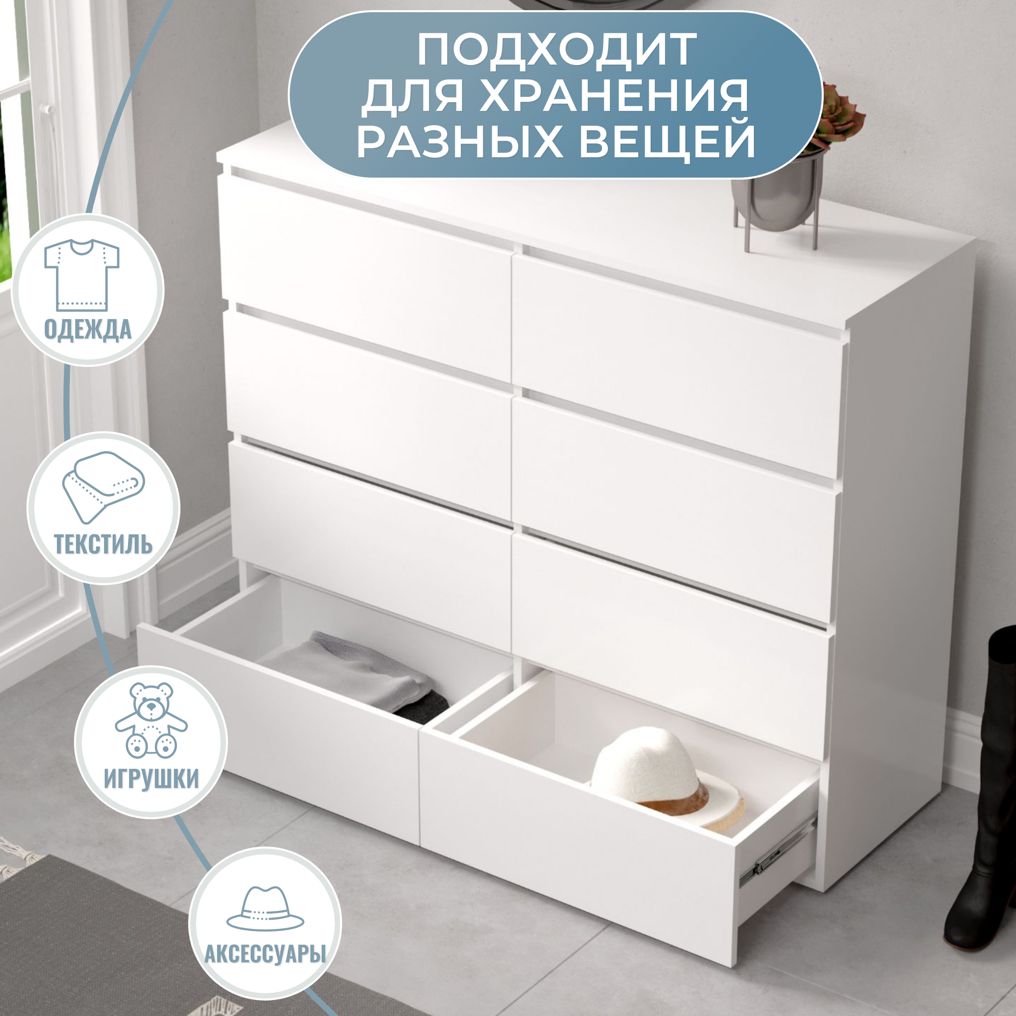 Комод для одежды Лион 8 ящиков 120х40x102 см, белый 11 048 ₽
