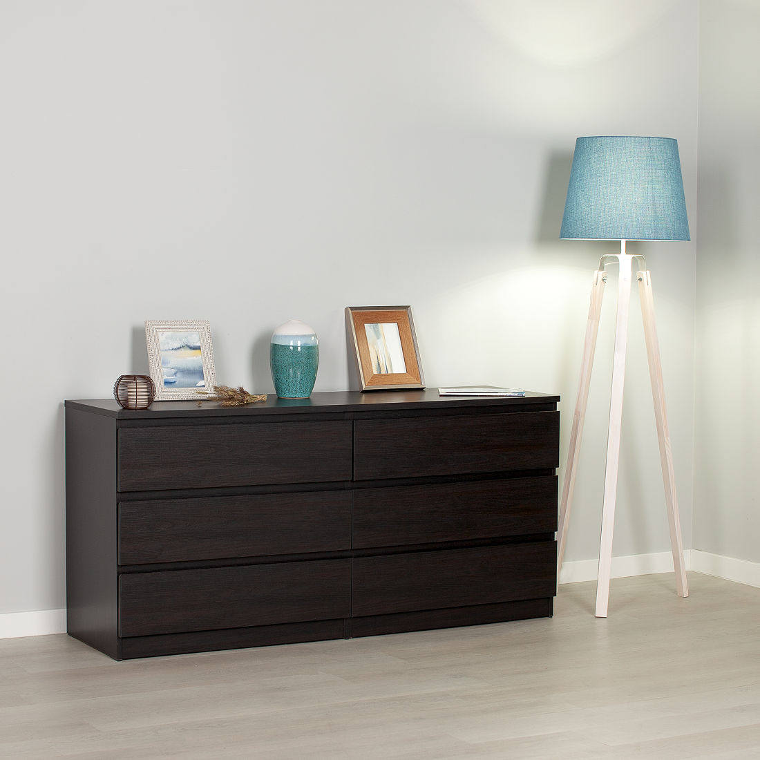 10 цен на Комод горизонтальный ГУД ЛАКК Мальта, 6 ящиков, с доводчиками, 160,3х 48 х 76,4 см, ЛДСП, черно-коричневый, дуб венге