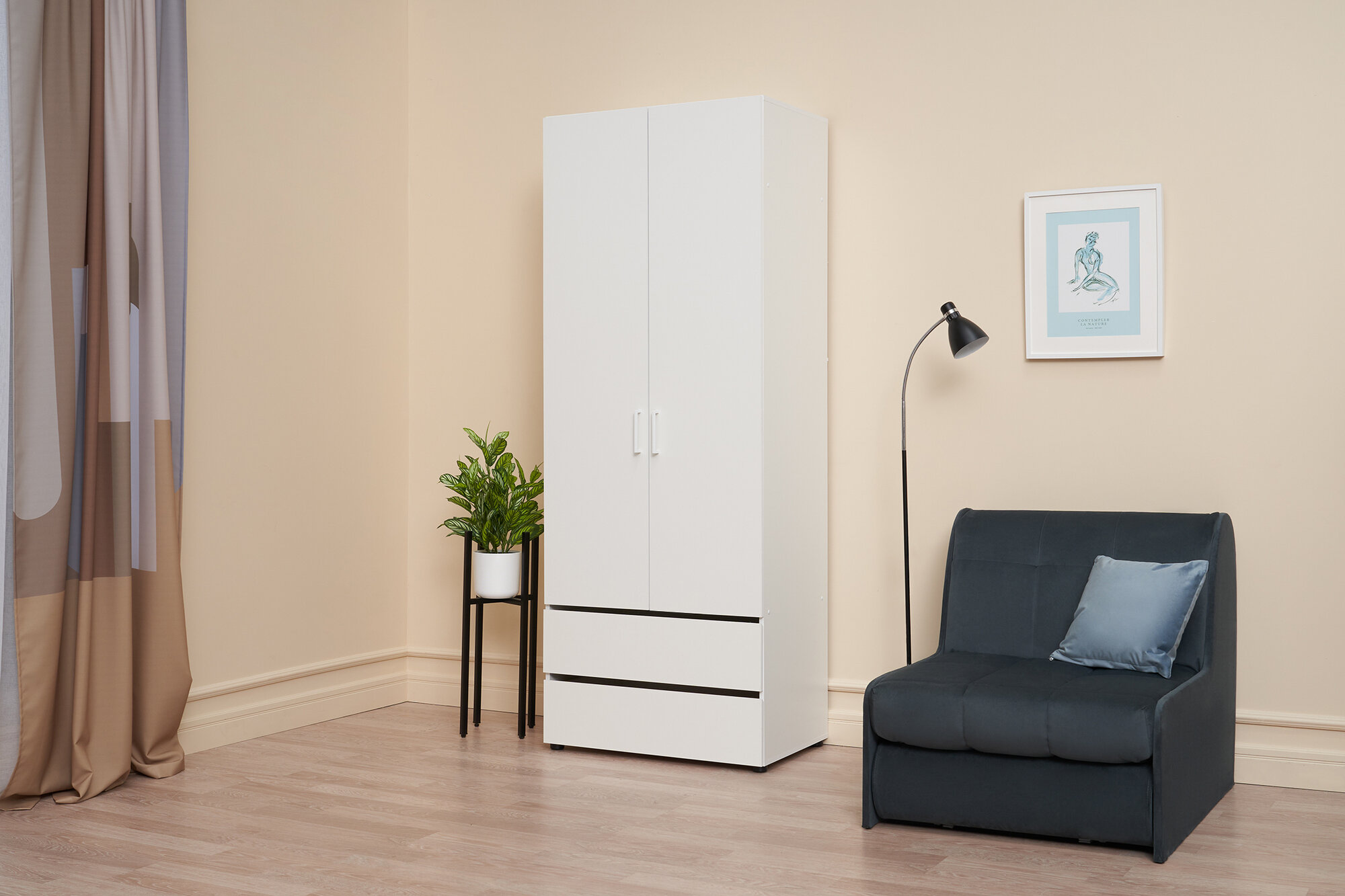 Шкаф для одежды распашной с ящиками и полками Нонтон Грейс, белый текстурный, 80х51.6х210 см информация: