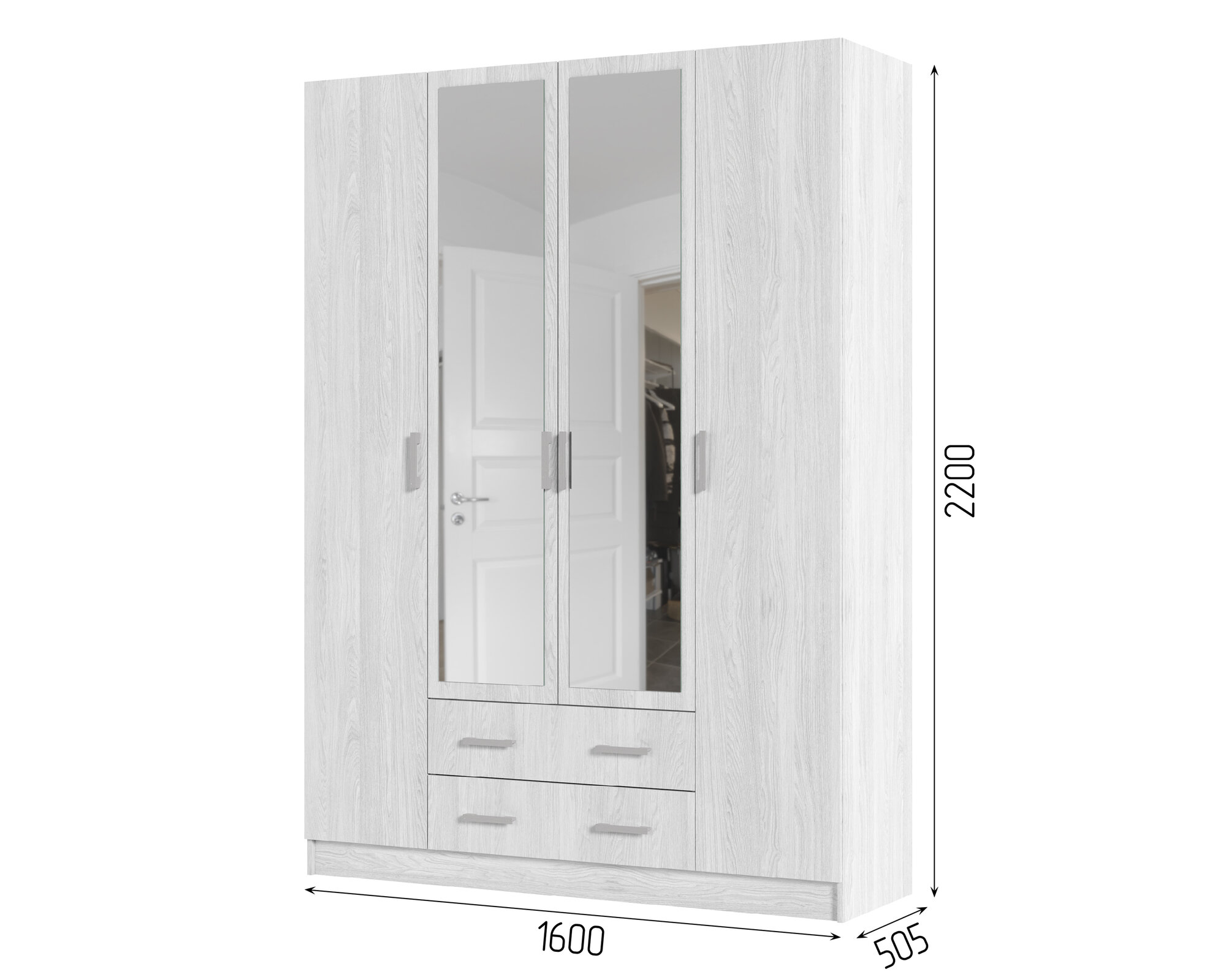 Шкаф для одежды четырехстворчатый с ящиками Валенсия ШК-014 Дуб Анкор Светлый 27 220 ₽