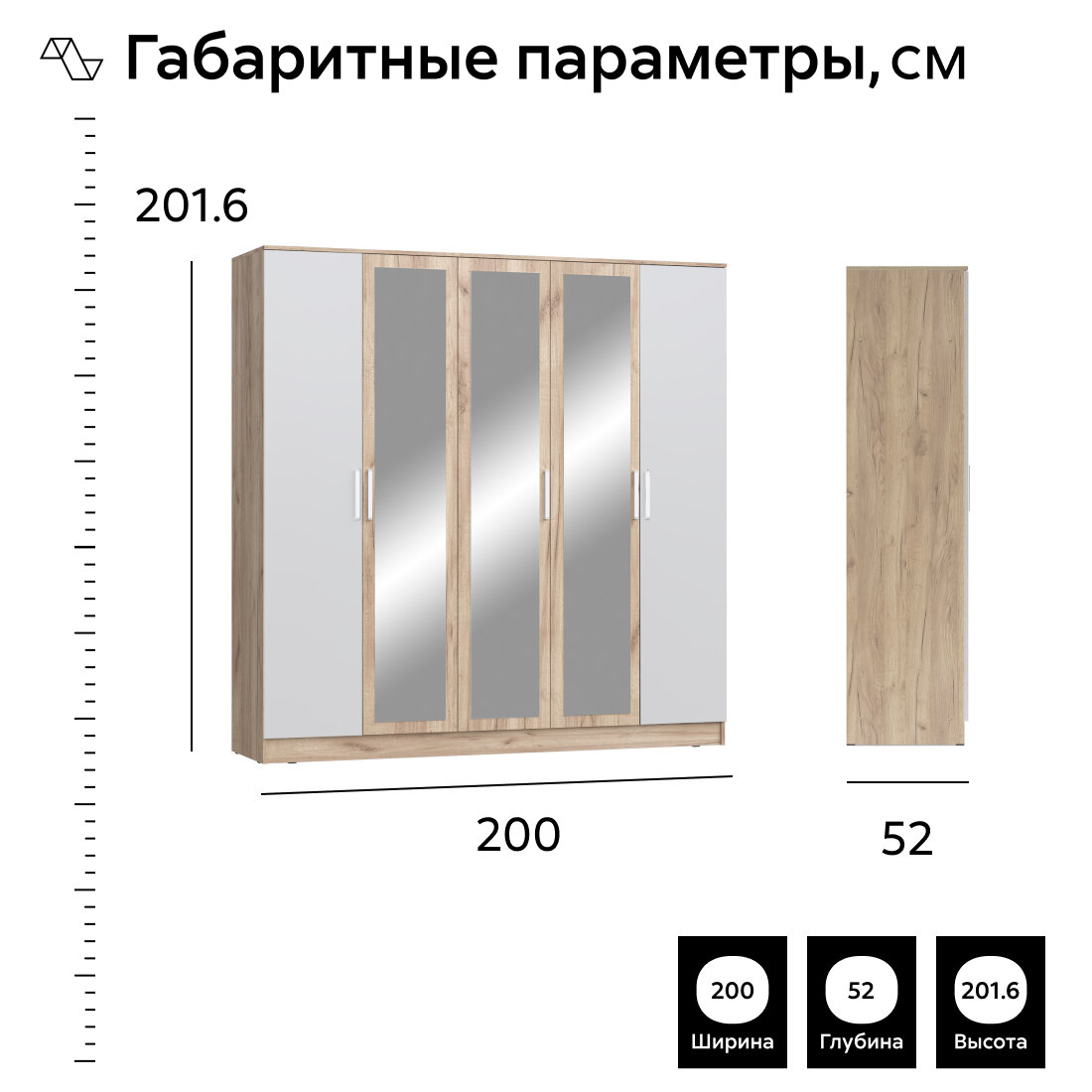 Отзывы на Шкаф для одежды распашной с зеркалом, с полками Нонтон Мартина, белый / дуб сонома 200х52х201.6 см