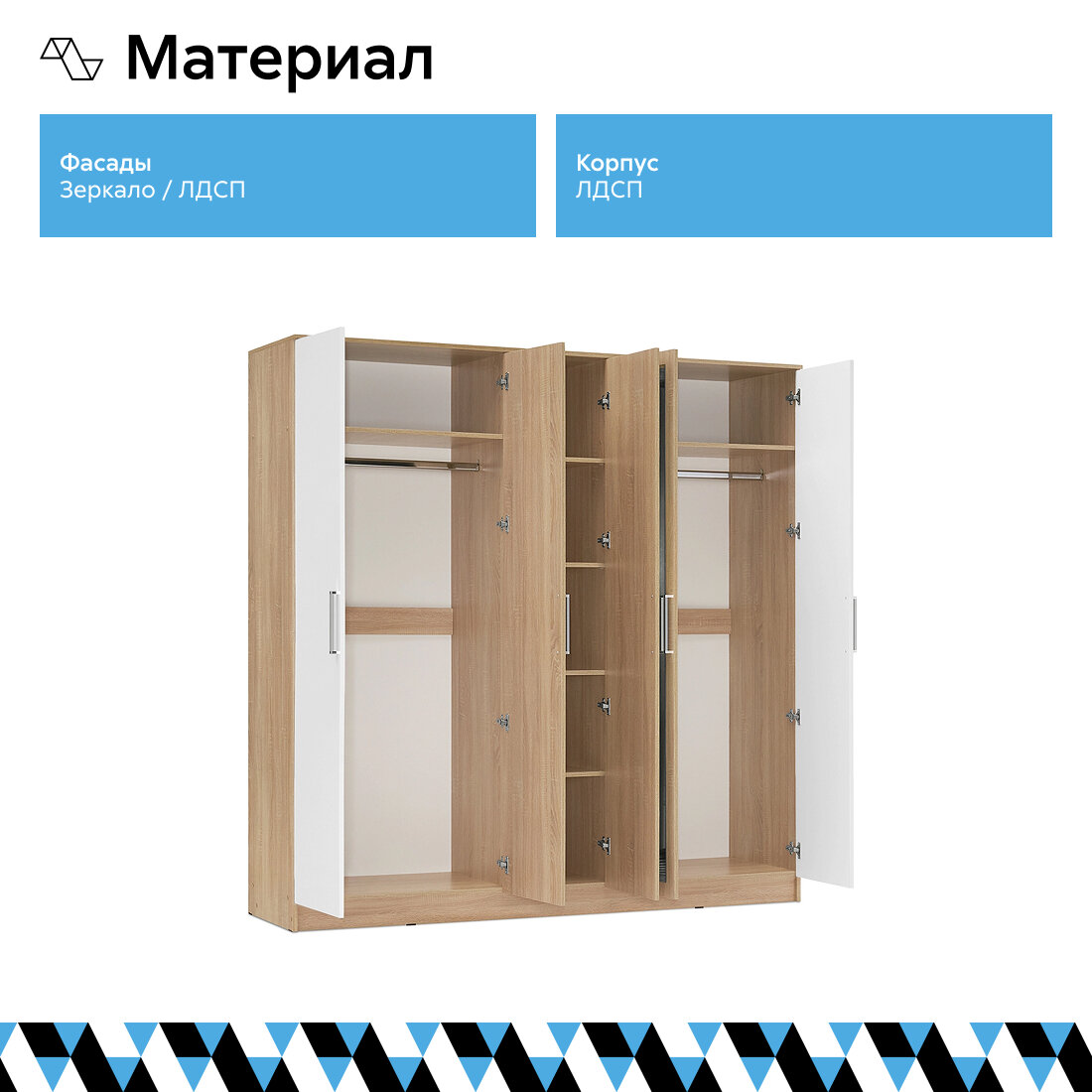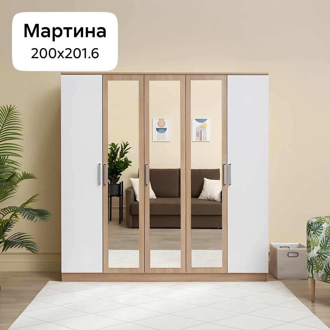 Шкаф для одежды 5-дверный Мартина с зеркалом Белый, Сонома ЛДСП 23 950 ₽