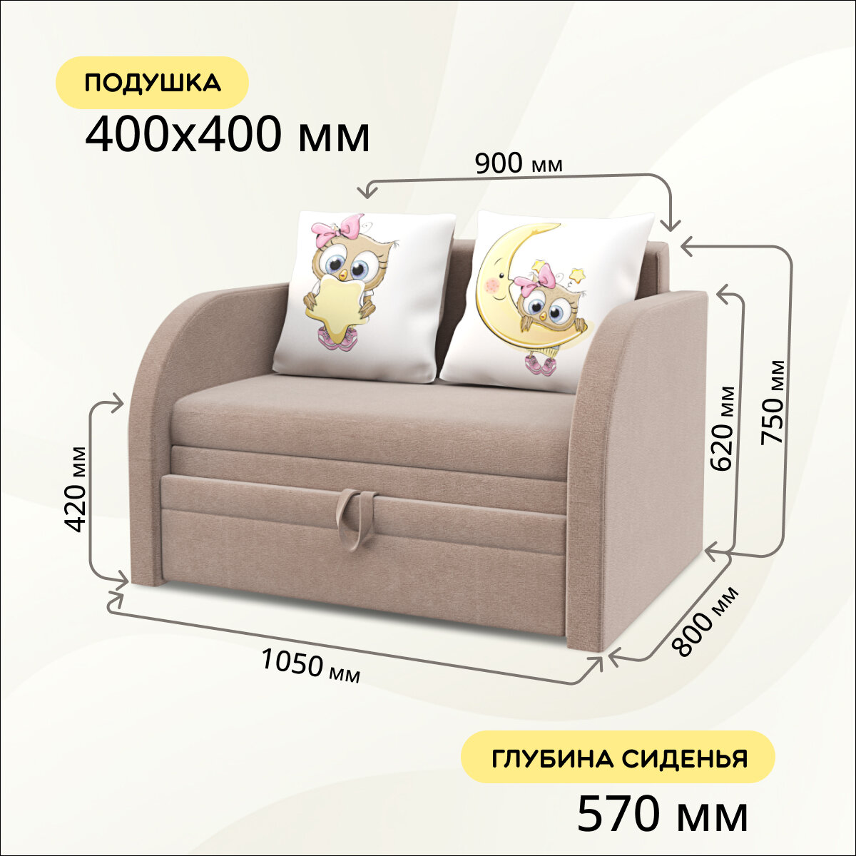 Детский диван "Малыш", с ящиком для белья, выкатной механизм, велюр, бежевый 27 000 ₽