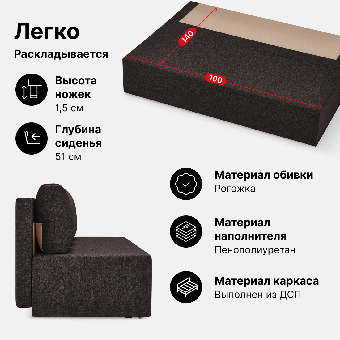 | Особенности | без подлокотников, раскладная конструкция, ящик для белья |