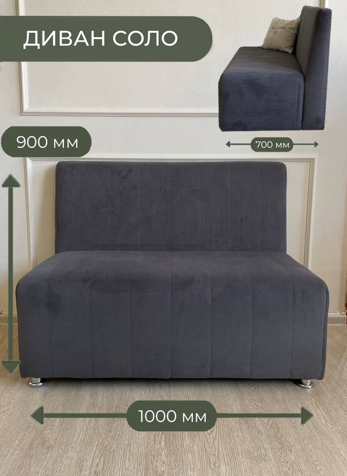 Диван прямой "Соло", 100х70х90, ALLURE, велюр серый, подходит для спальни, детской, гостиной, прихожей, дачи, сада, балкона, кафе и ресторанов, Horeca 10 900 ₽