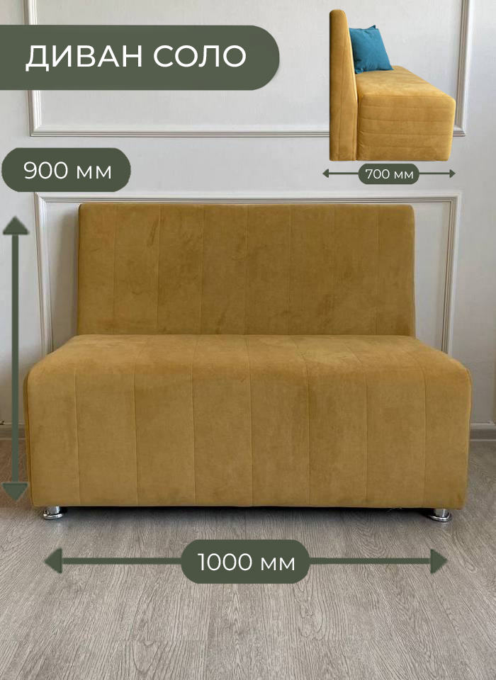 Диван прямой "Соло", 100х70х90,ALLURE. велюр желтый, подходит для спальни, детской, гостиной, прихожей, дачи, сада, балкона, кафе и ресторанов, Horeca 9 900 ₽