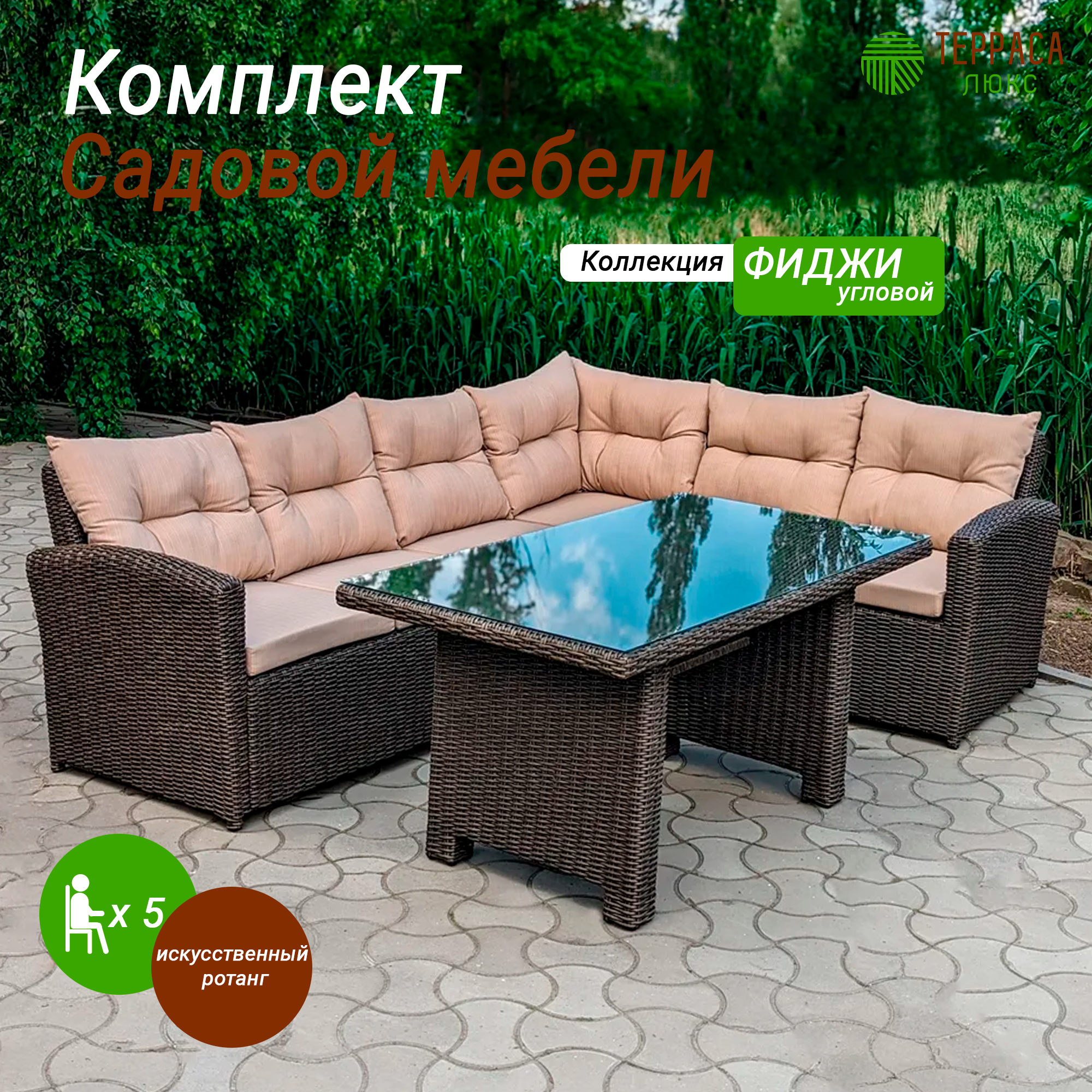 Отзывы на Комплект садовой мебели "Фиджи", искусственный ротанг, угловой диван,5 персон, обеденный стол, тёмно-коричневый