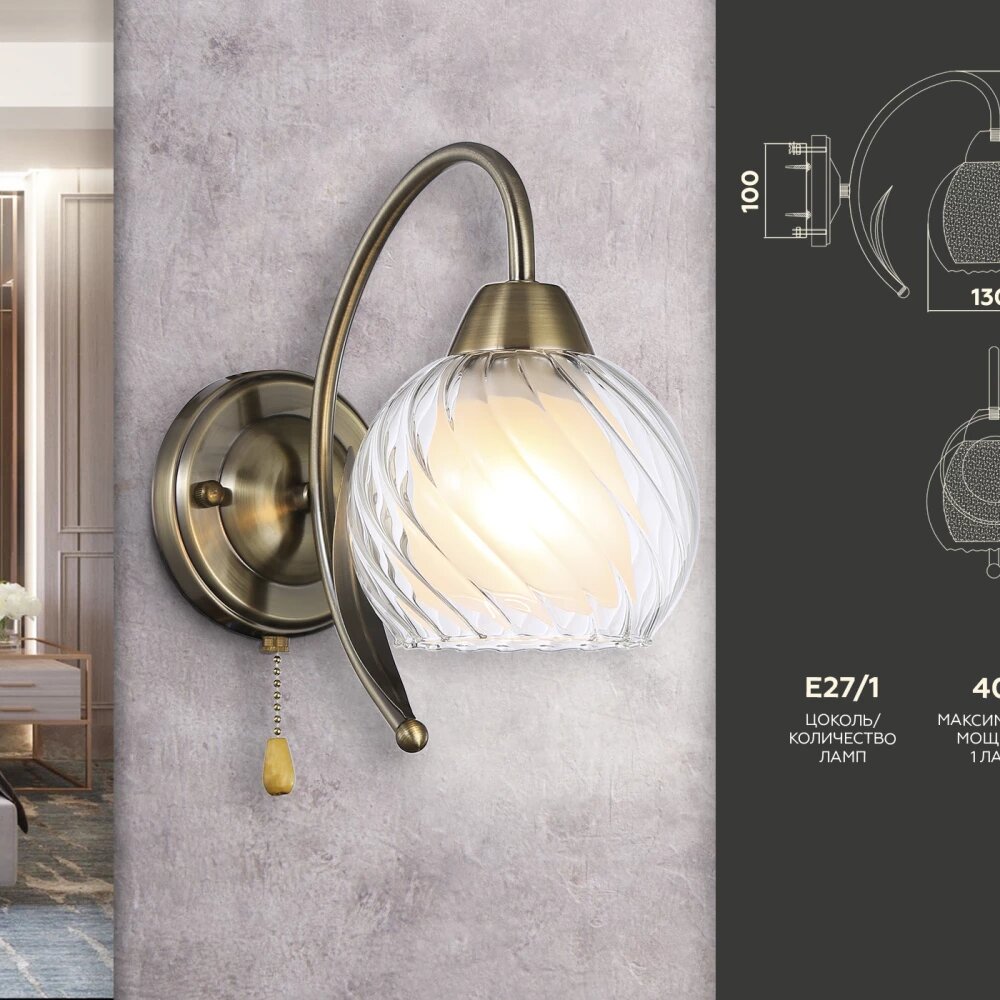 | Комплектация | Настенный светильник со сменной лампой (лампочка в комплект не входит) |