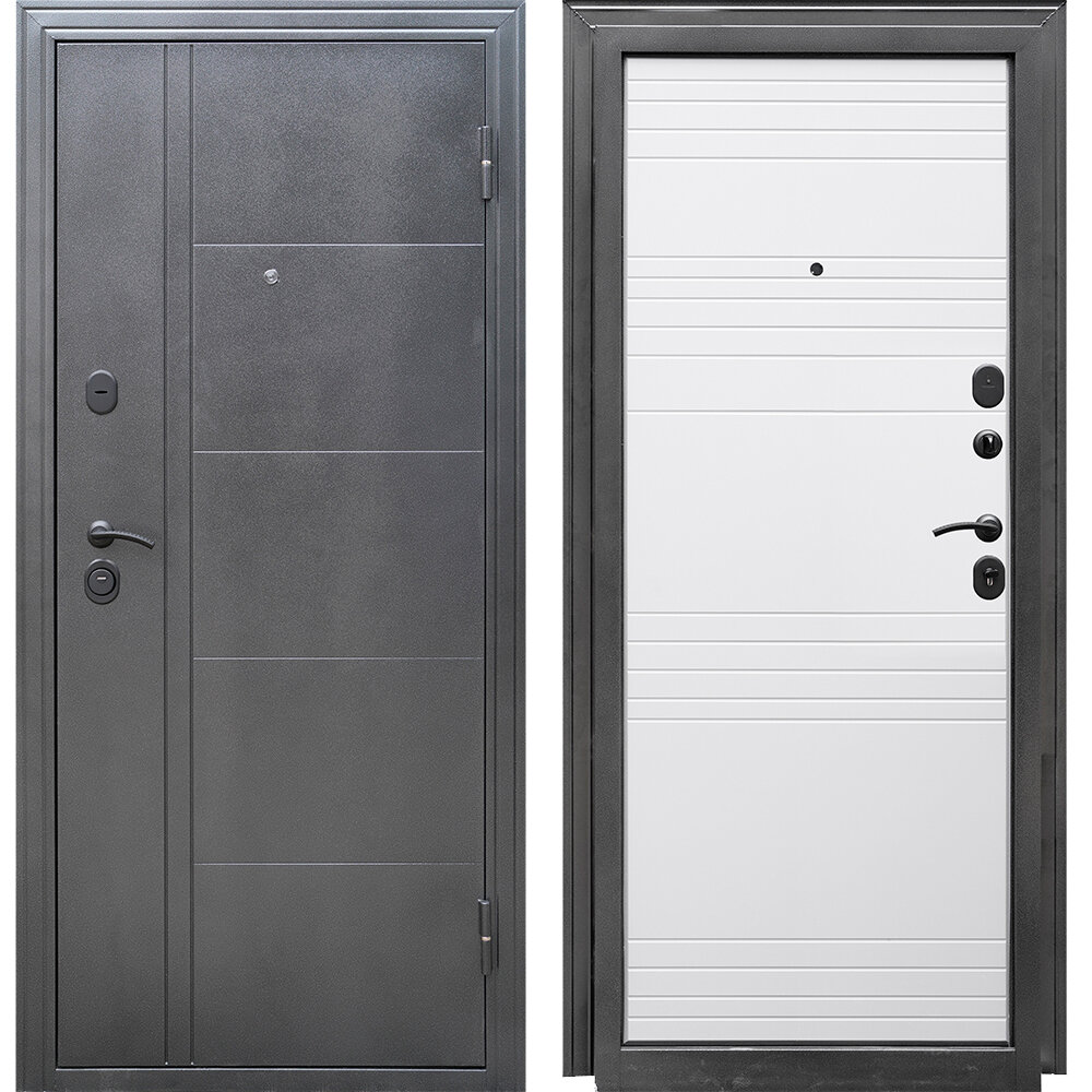 Дверь входная мегатрон WOOD 2 Бетон графит - Белое дерево 960 Правая