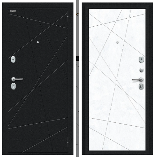 Некст Kale Букле черное Off-white, дверь входная Браво 205х96см