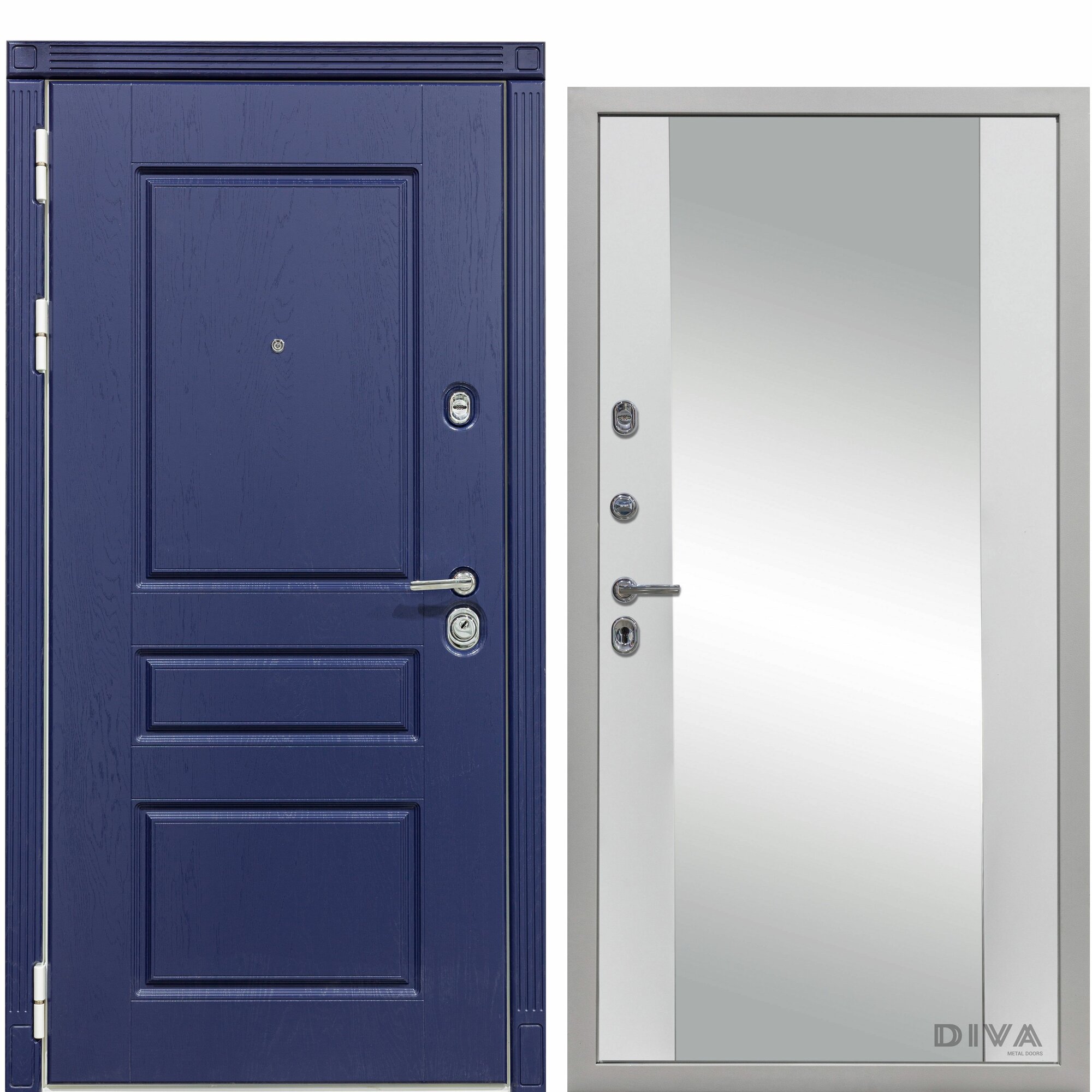 10 цен на Дверь входная металлическая DIVA 45 Зеркало 2050x860 Левая Роял синий - Д15 Белый Софт, УТ-00074201