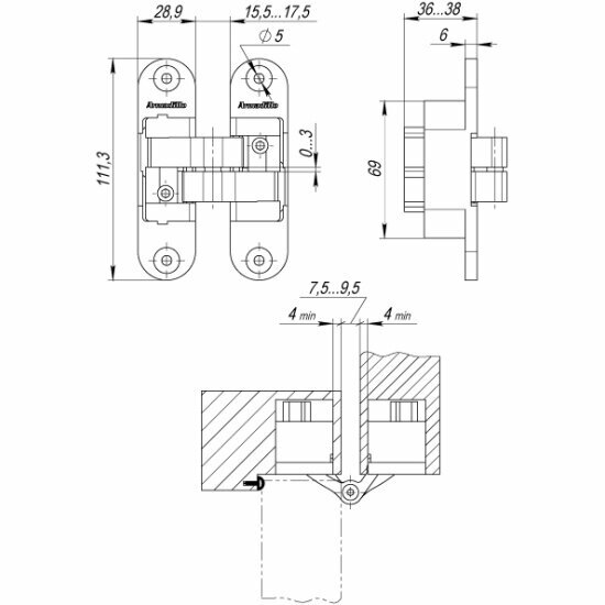Петля дверная скрытой установки Armadillo Architect Universal 3D-ACH 60 SC Мат. хром