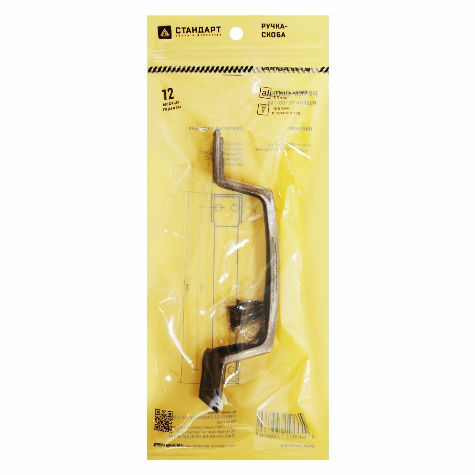 Ручка-скоба дверная (старая бронза) стандарт РС 100 AB информация:
