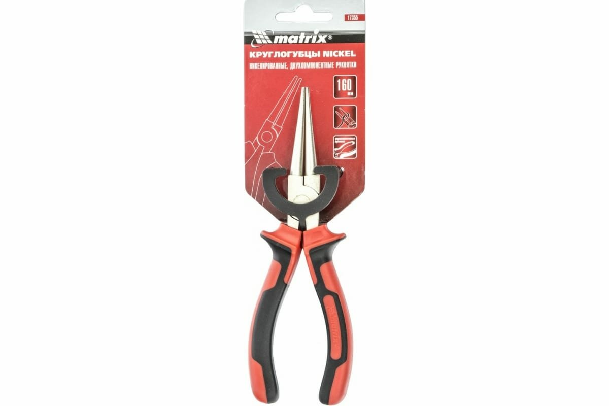 Круглогубцы Matrix NICKEL 160 мм, никелированные, двухкомпонентные рукоятки 17355 469 ₽