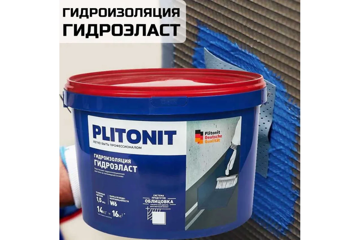 PLITONIT Гидроизоляционная эластичная мастика ГидроЭласт -14 кг информация: