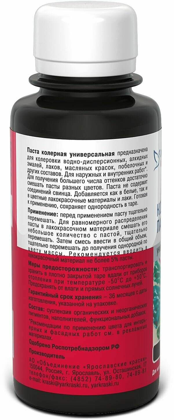 Паста колерная универсальная Ярославские краски черный бутылка 0,1 л информация: