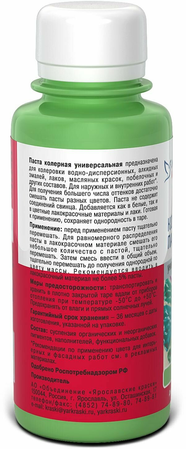 Паста колерная универсальная Ярославские краски салатный бутылка 0,1 л информация: