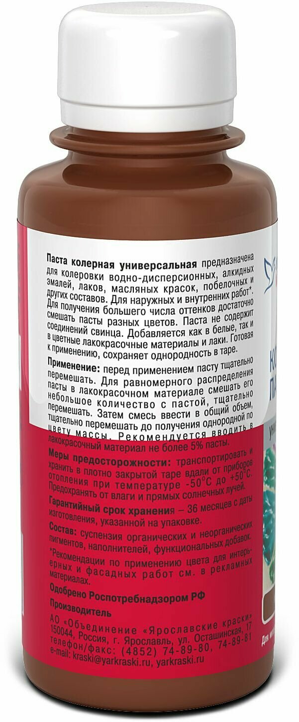 Паста колерная универсальная Ярославские краски коричневый бутылка 0,1 л информация: