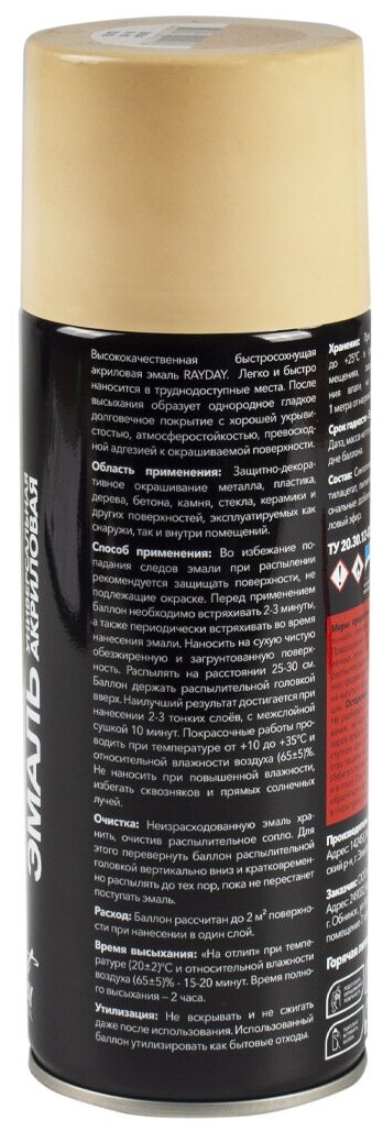Краска аэрозольная акриловая Rayday RD-056, глянцевая, 520 мл, бежевая информация: