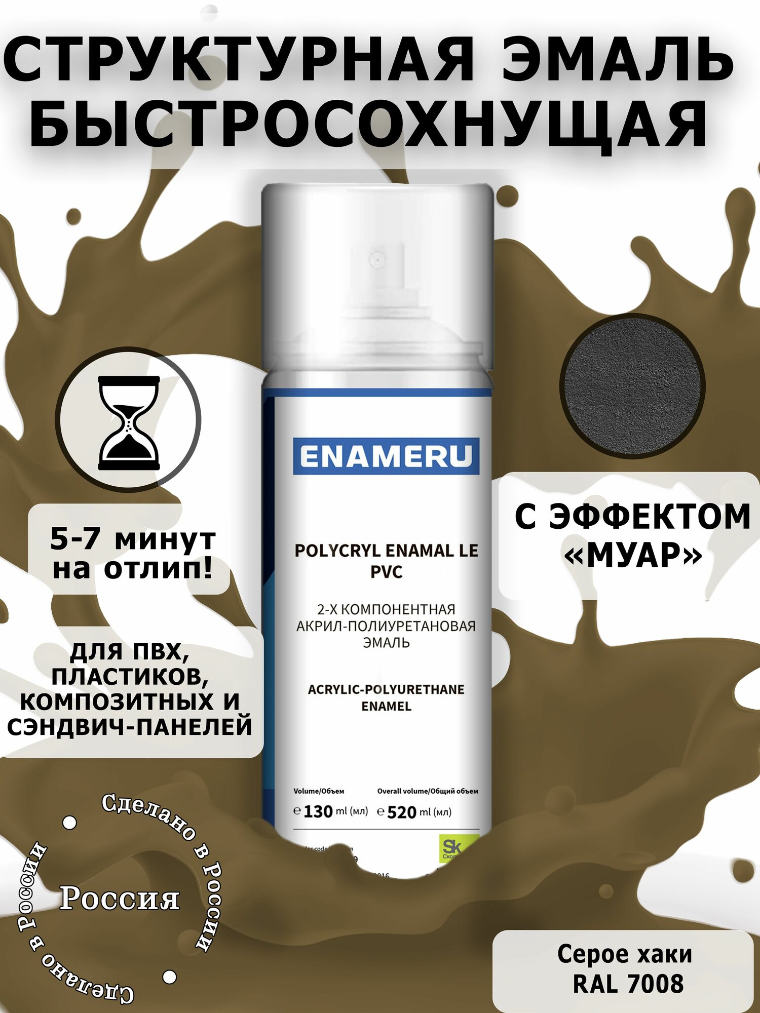 Структурная краска для ПВХ, пластика, окон Энамеру, Быстросохнущая, Акрил-полиуретановая, Полуматовая, 0.52 л, Серое хаки RAL 7008 1 650 ₽