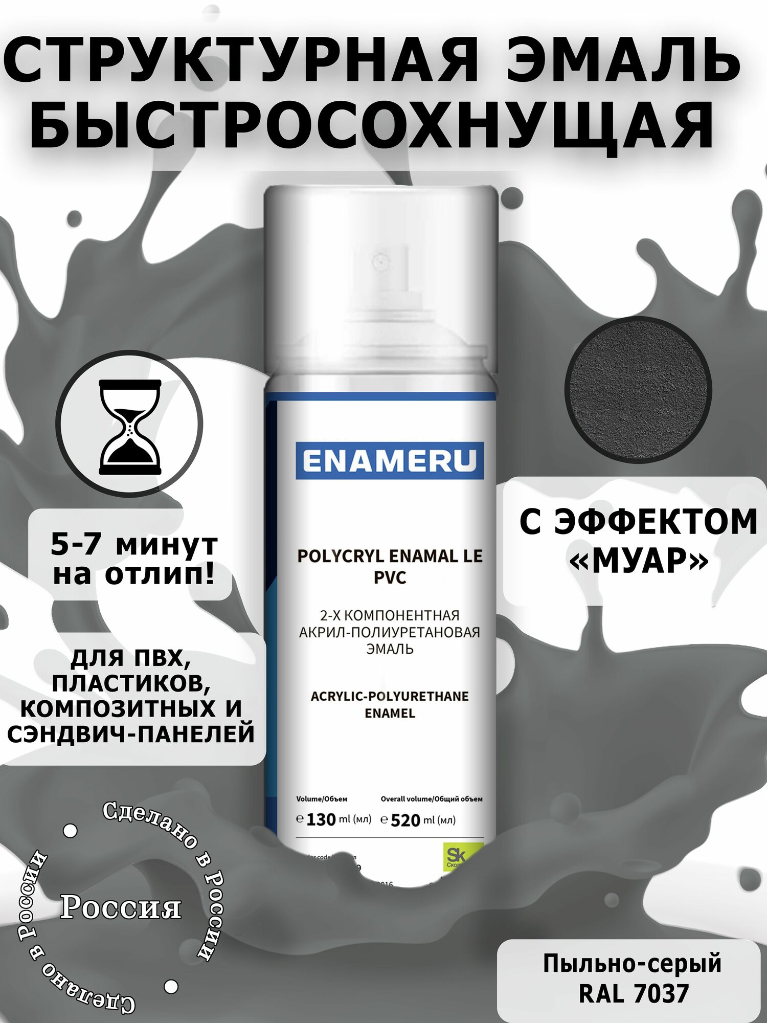 Структурная краска для ПВХ, пластика, окон Энамеру, Быстросохнущая, Акрил-полиуретановая, Полуматовая, 0.52 л, Телегрей 4 RAL 7047 1 650 ₽