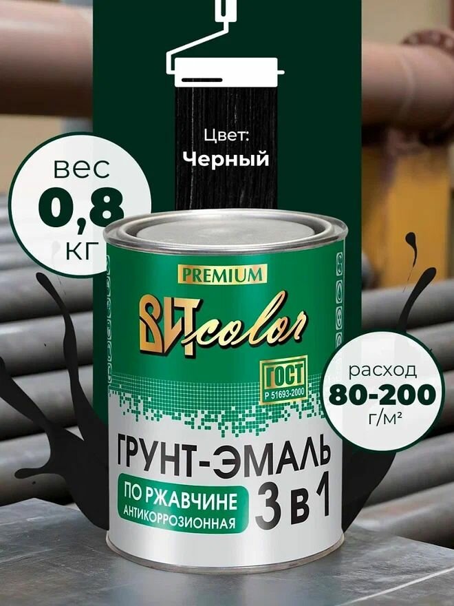 Грунт-эмаль по ржавчине 3 в 1 черная 0,8кг ВИТcolor информация:
