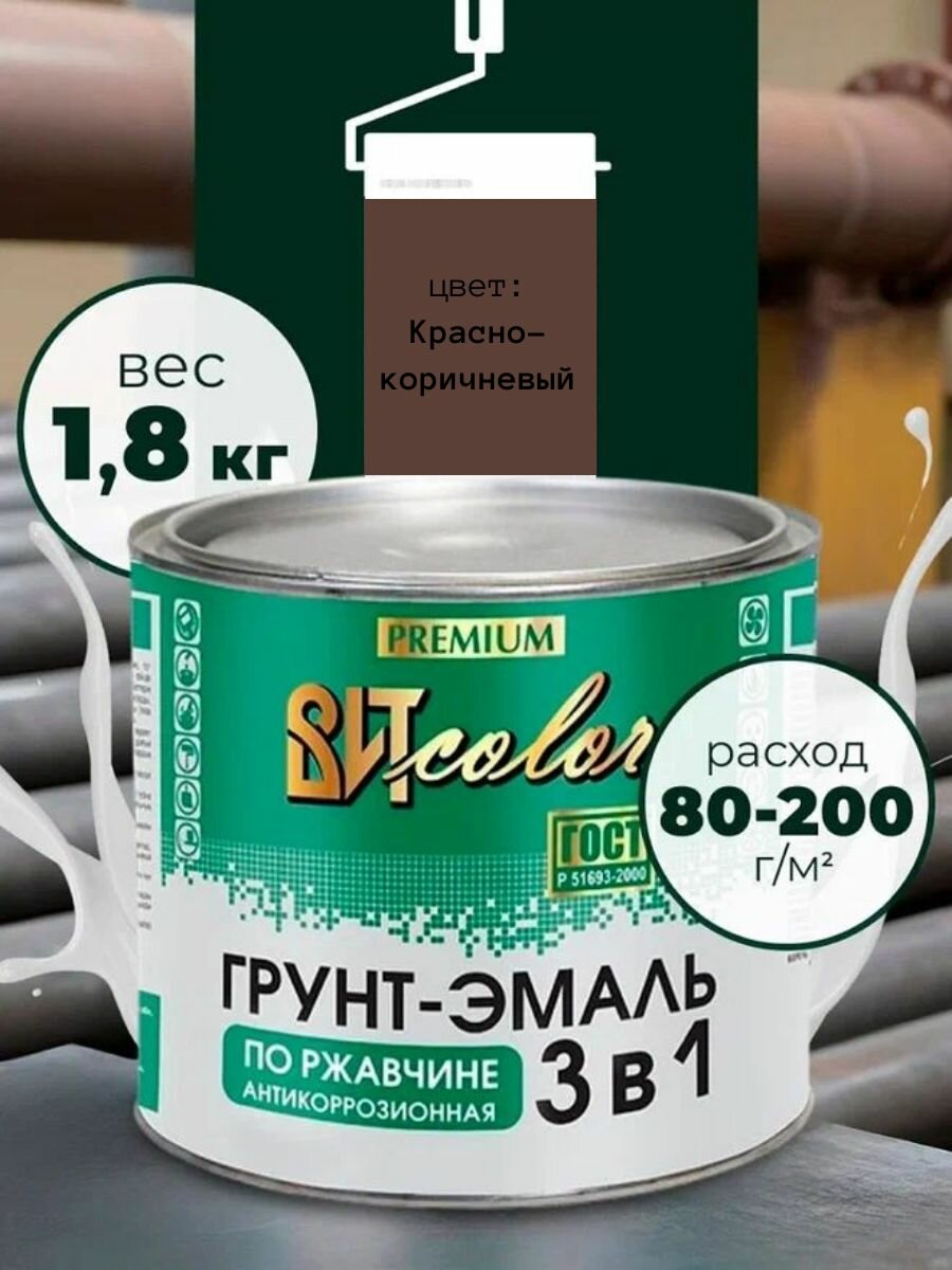 Грунт-эмаль по ржавчине 3 в 1 красно-коричневая 1,8кг ВИТcolor информация: