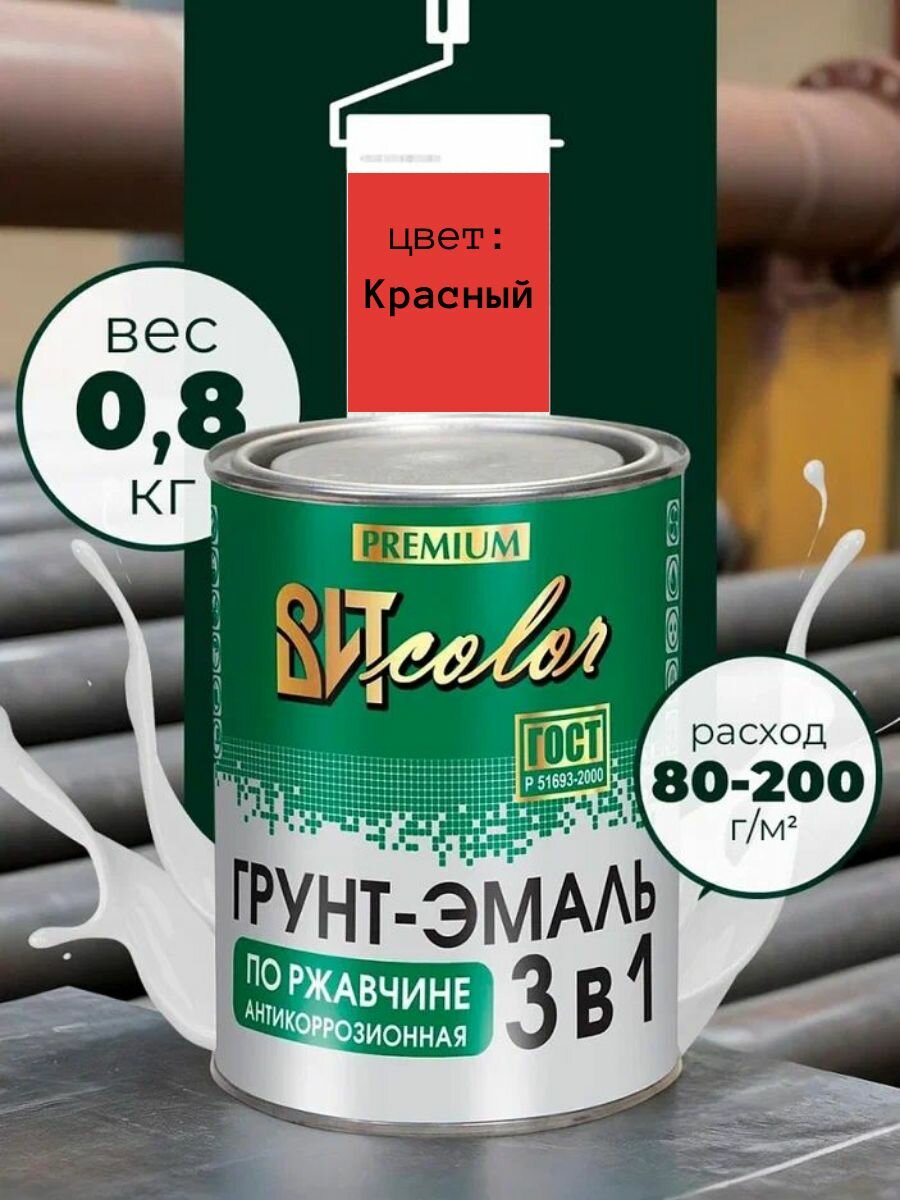 Грунт-эмаль по ржавчине 3 в 1 красная 0,8кг ВИТcolor информация: