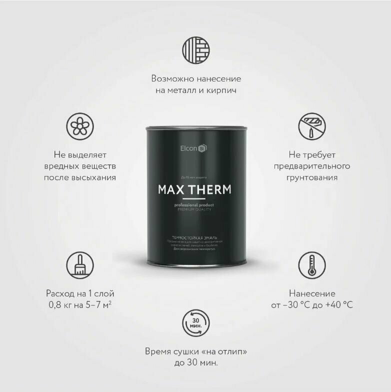 Эмаль Термостойкая Elcon Max Therm 10кг 700°С Черный, Антикоррозионная для Защитной Окраски Печей, Котлов, Металлического Оборудования / Элкон. 9 891 ₽