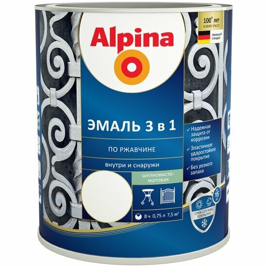 Грунт- эмаль по ржавчине Alpina 3 в 1 белая (ral 9003) 0,75 л (1/6) " информация: