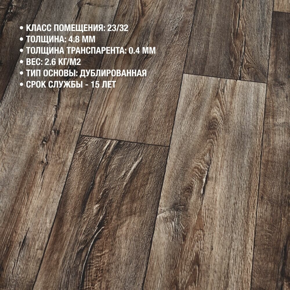 Линолеум напольный на отрез iDEAL, коллекции Ultra "Cracked oak 2". Полукоммерческий линолеум 2,5х6м. для пола в рулоне 23,32 класса 51 870 ₽