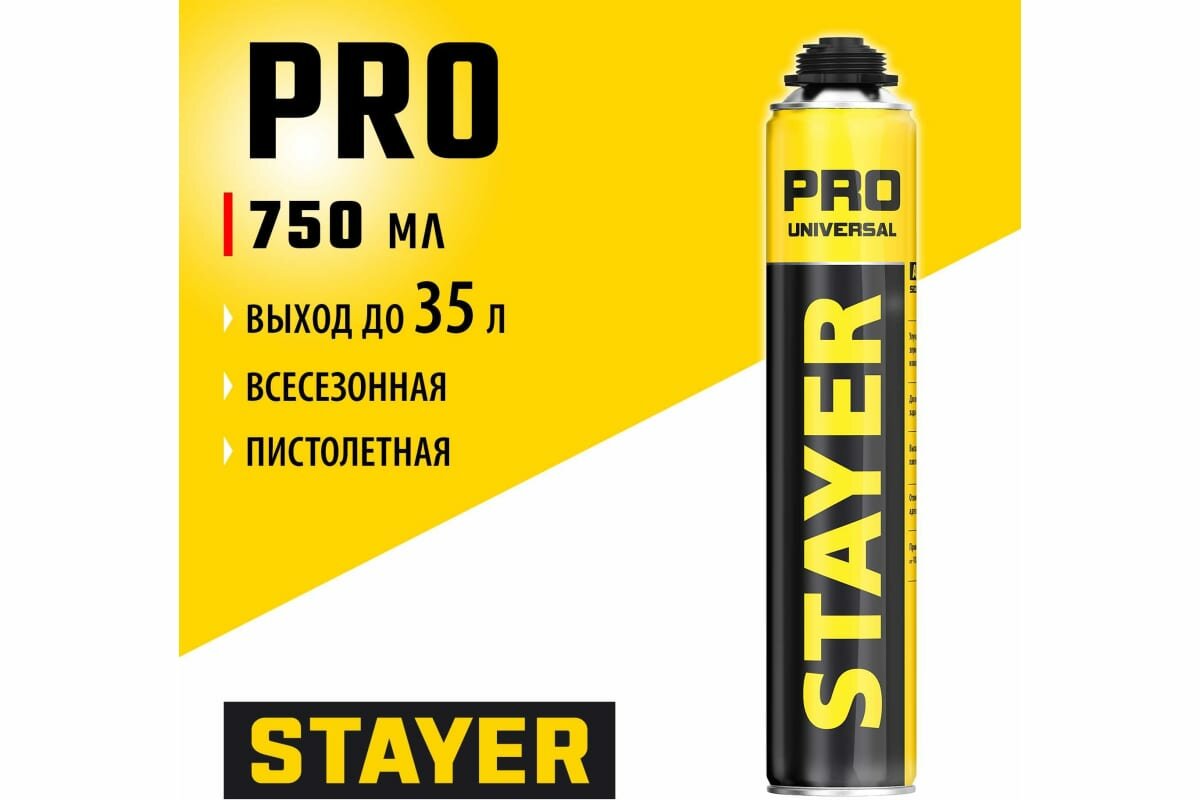Отзывы на Монтажная пена STAYER Professional всесезонная, для монтажного пистолета, выход до 35 л, 750 мл 41135