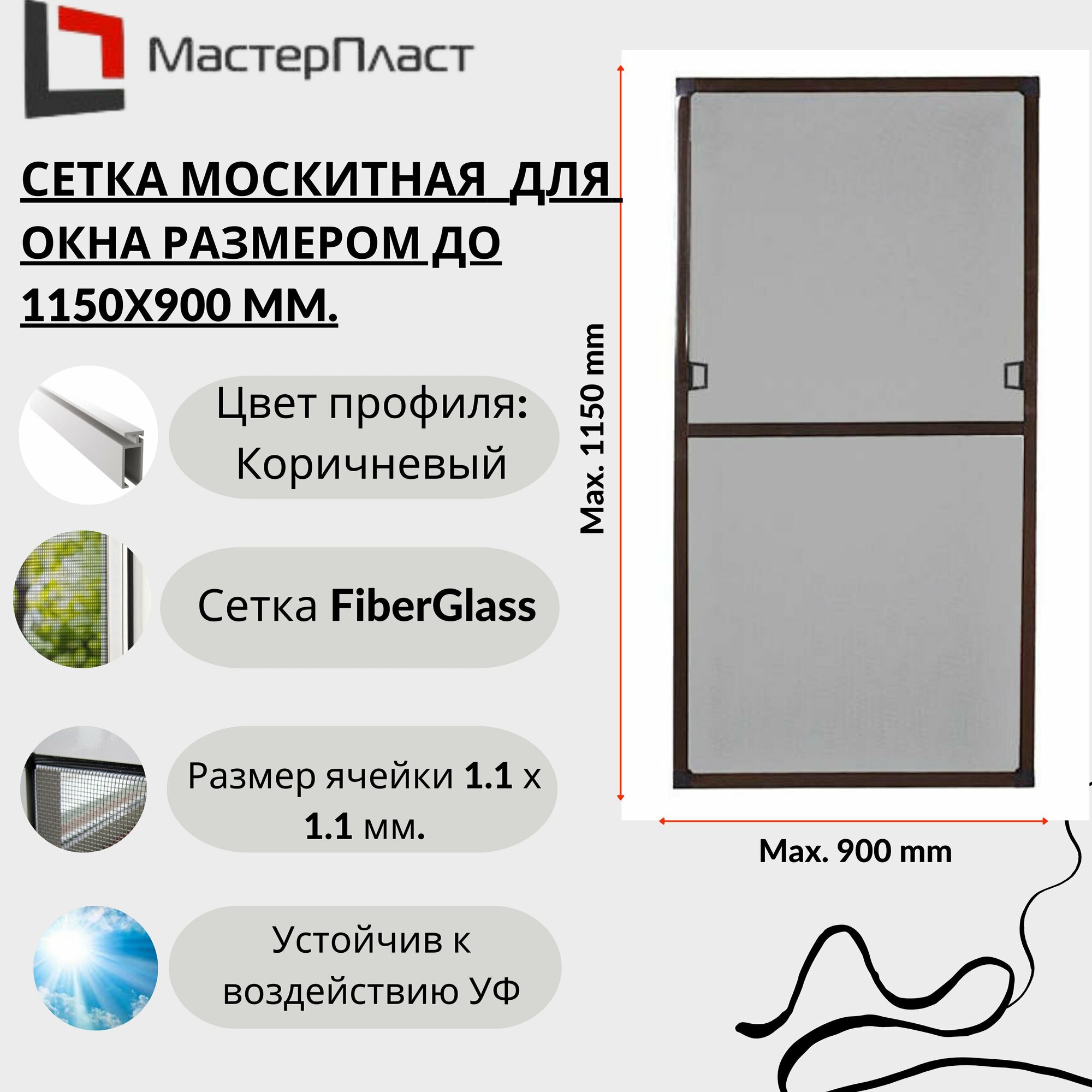Москитная сетка для окна размером до 1150 х 900 мм, коричневая/ Сетка москитная на окна для самостоятельной сборки информация: