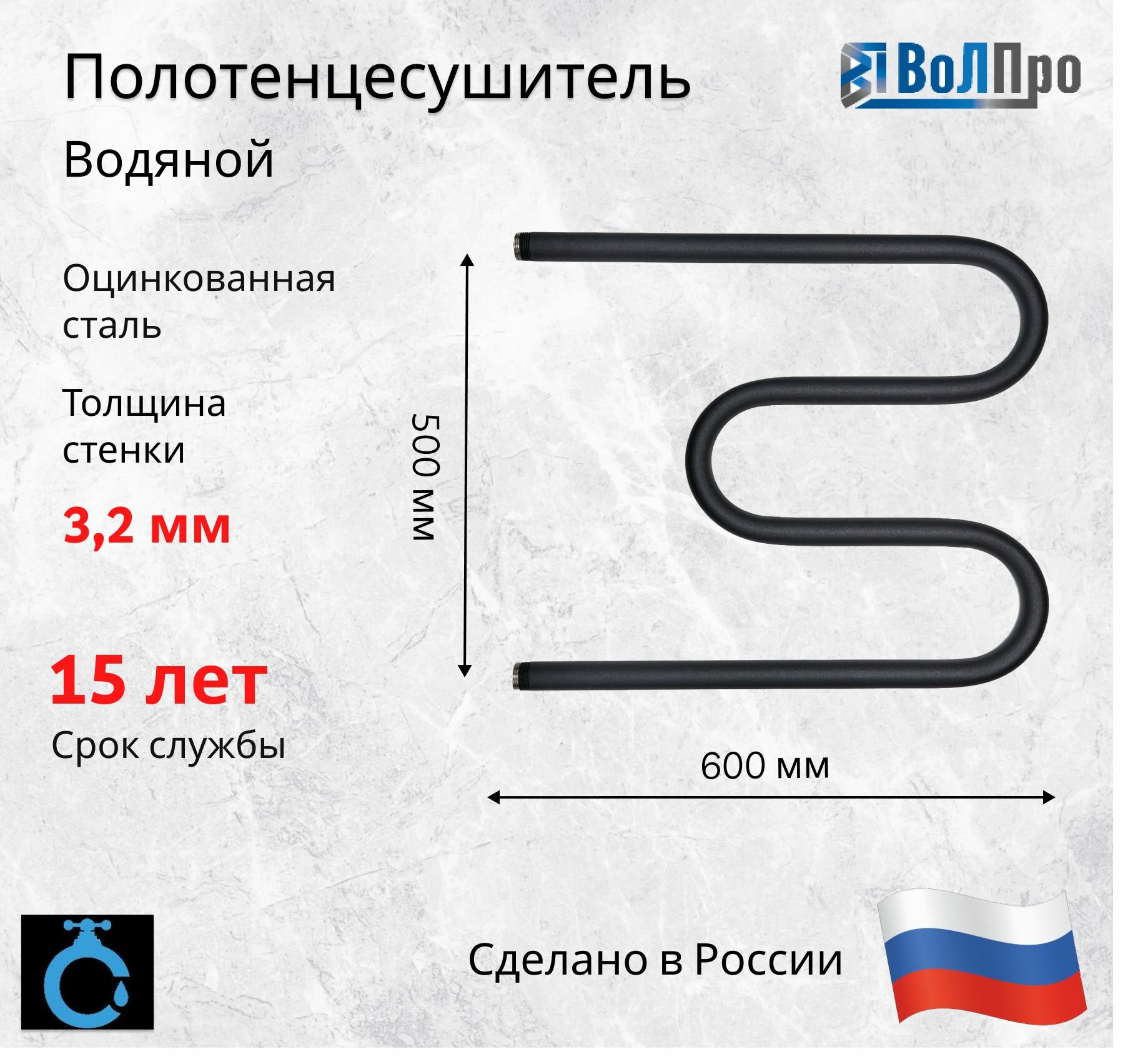 Полотенцесушитель водяной "ВоЛПро" М-образный, черный, 60x50, 1", с креплениями 6 400 ₽