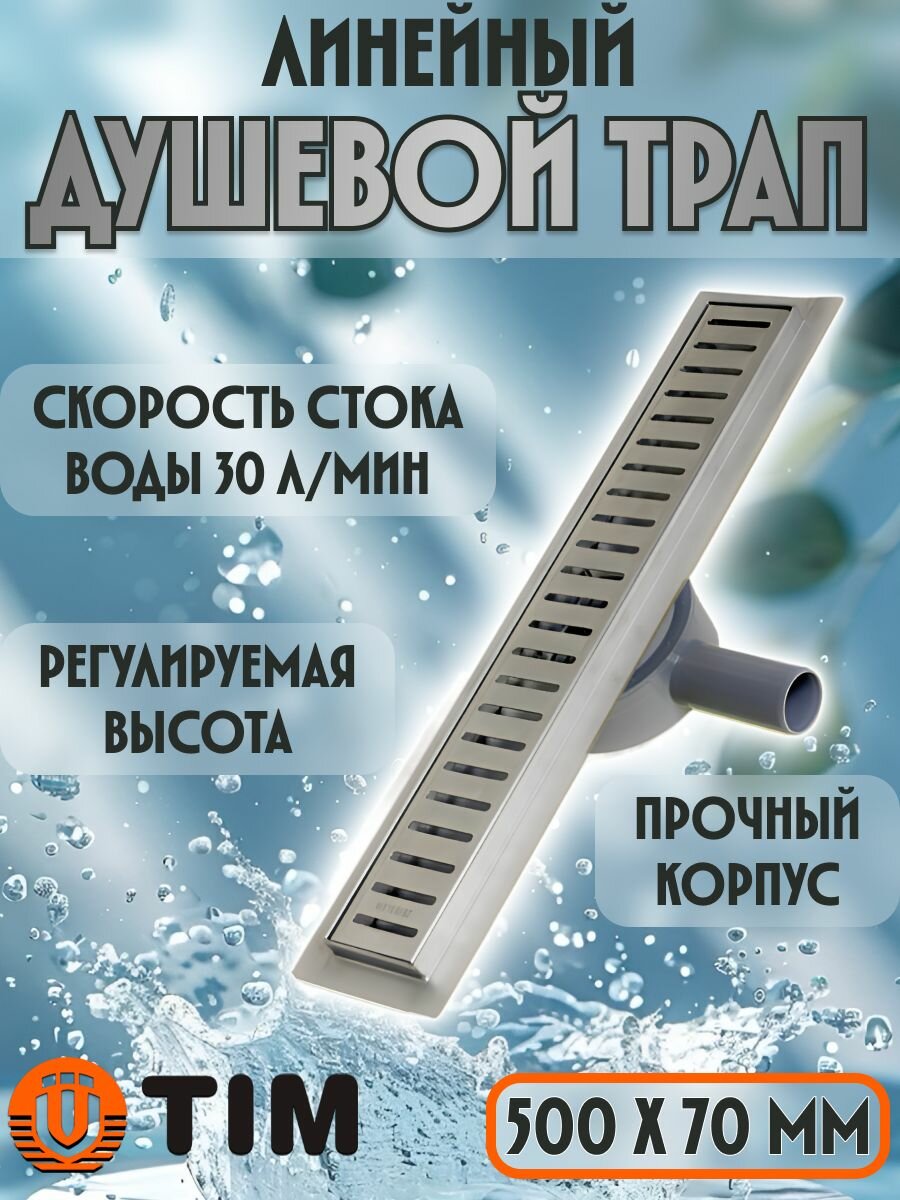 Отзывы на Трап для душа и ванной комнаты линейный 70*500 мм с гидрозатвором и сухим затвором (комбинированный), горизонтальный выход D50 мм, с решеткой хром