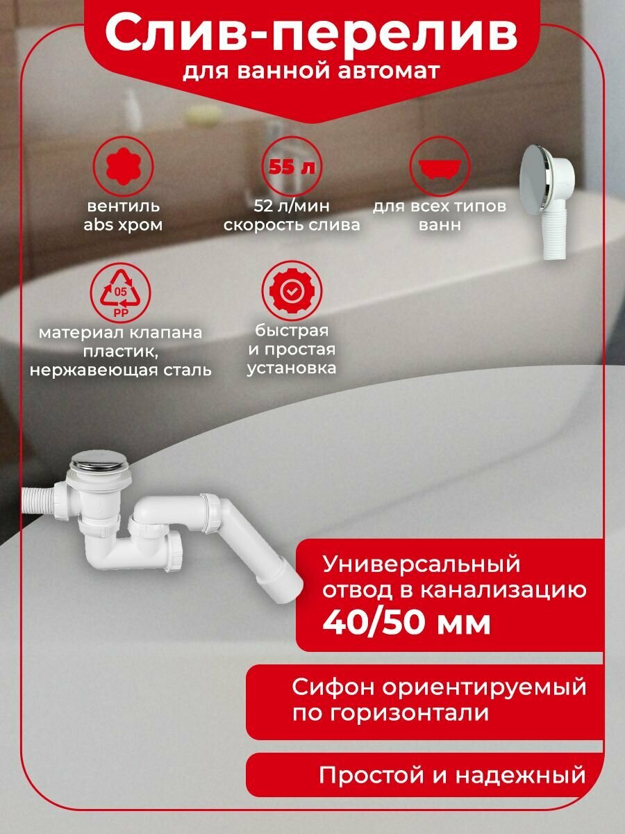 Отзывы на Слив-перелив для ванной Wirquin клик клак, автомат, L700 мм, с жестким патрубком