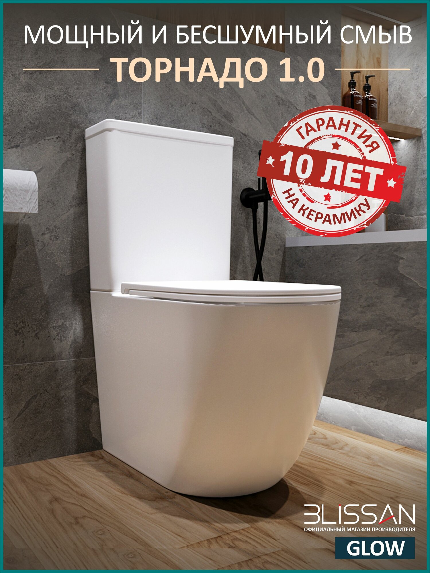 10 цен на Унитаз напольный безободковый BLISSAN Glow Торнадо 1.0 с сиденьем микролифт быстросъемное